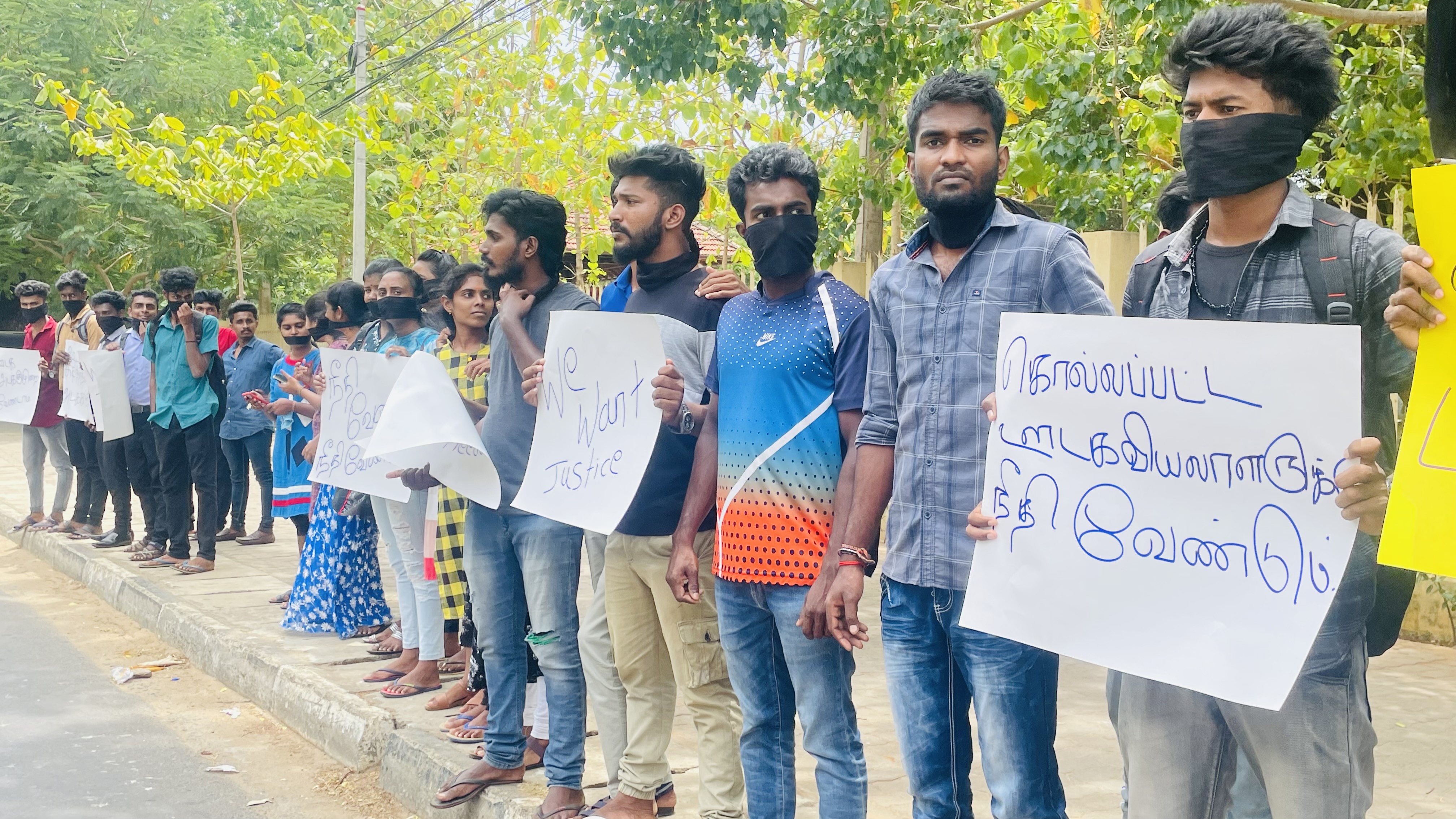 இந்தப் போராட்டத்தில் யாழ்.பல்கலைக்கழக மாணவர்கள் கலந்துகொண்டு தமது கண்டனங்களை தெரிவித்தனர்.